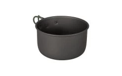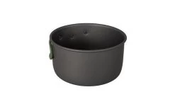 Ein komplettes und geräumiges 3-teiliges leichtes Kochset. Bestehend aus 2 Kochtöpfen und einer Bratpfanne. Ideal für den Einsatz im Freien geeignet. Das Set ist mit hitzebeständigen und klappbaren Griffen aus Silikon ausgestattet. Hergestellt aus massivem, hart eloxiertem Aluminium, so dass die Gefahr des Anbrennens verringert wird. Geeignet für Gas- und Benzinbrenner. Die Pfannen sind stapelbar und somit kompakt zu lagern und zu transportieren, inklusive Tragetasche.