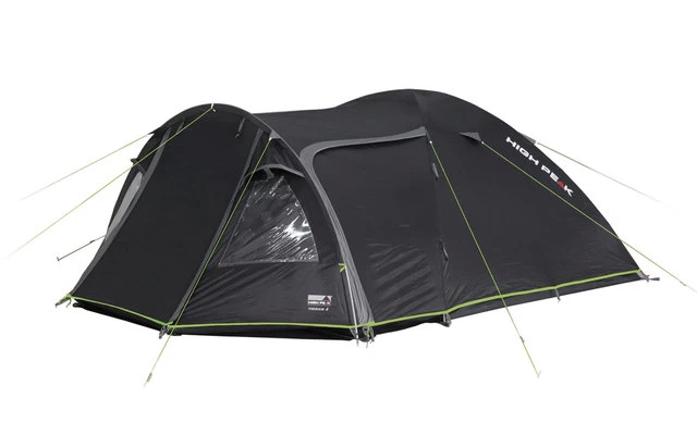 Das HighPeak Mesos 4 Familienzelt bietet Schlafmöglichkeiten für 4 Personen. Die Schlafkammer ist am Dach an der Hinterseite mit einer abgedeckten Lüftungsöffnung versehen um auch bei schlechtem Wetter mit Frischluft versorgt werden zu können. Zusätzlich sorgt das atmungsaktive, PU-beschichtete Außenzelt für Sauerstoffaustausch. Der Vorraum bietet die Möglichkeit Gepäck im Trockenen zu lagern. Mit drei Klarsichtfolien-Fenstern ist für reichlich Tageslicht gesorgt, gedimmt werden kann das Licht dann durch die angebrachten Gardinen.