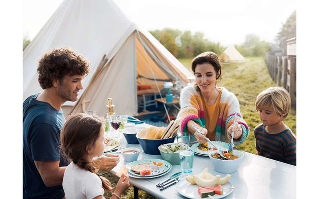 Damit kann das Geschirr platzsparend verstaut werden und eignet sich ideal für das Camping, den Caravan- oder Bootsurlaub. Das Campinggeschirr Flow ist in verschiedenen Farben und Dekoren erhältlich und besteht aus verschiedenen Tellern, Schalen, Bechern und Trinkgläsern. Für unbegrenzte Kombinationsmöglichkeiten!Â