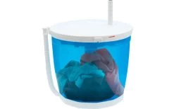 Im Gegensatz zu einer herkömmlichen Miniwaschmaschine funktioniert diese Campingwaschmaschine ganz ohne Strom und wird manuell per Hand betrieben – das schont die Umwelt und ist wesentlich zeitsparender!