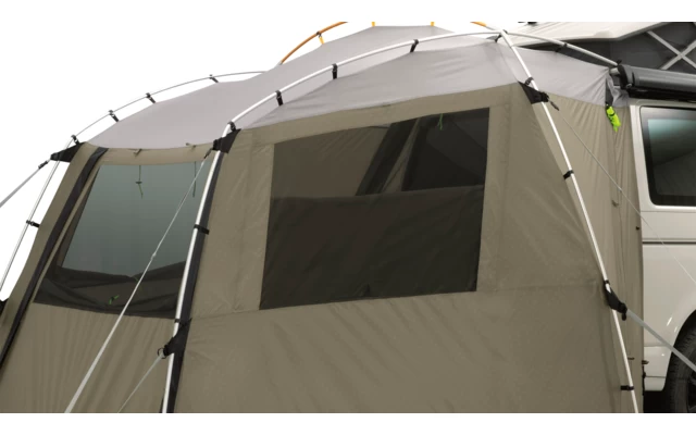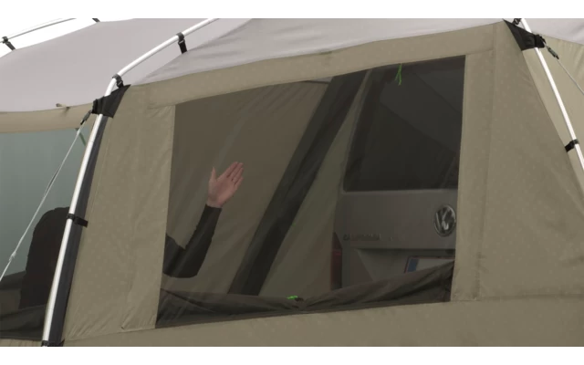 Das vielseitige Outwell Woodcrest-Vorzelt ist ideal für Paare, kleine Familien und Freunde und ein großartiger Begleiter für einen Tourenurlaub. Das markante freistehende Kuppeldesign kann sowohl an der Seite oder am Heck von Wohnmobilen als auch an kleineren Fahrzeugen einfach angebracht werden. Kompakt und leicht, finden Sie das Aluflex-System aus vorgebogenen Aluminiumstangen, die Clips verwenden, was bedeutet, dass es schnell und einfach sicher aufgestellt werden kann. Die insektensicheren Netzfenster erweitern Ihre Belüftungsmöglichkeiten und verfügen über wasserdichte Vorhänge mit Reißverschluss. Mit viel Platz, um sich bequem zu entspannen, können Sie die vorderen und hinteren Türen wegrollen oder sie als Vordächer verwenden, um an der frischen Luft zu entspannen und sich mit der Natur zu verbinden.